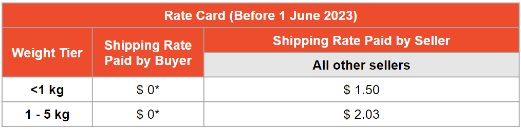 다음 요금표는 2023년 6월 1일부터 SPX Express (Self-Collection)^으로 주문된 상품에 적용됩니다.